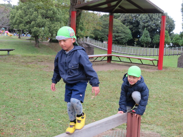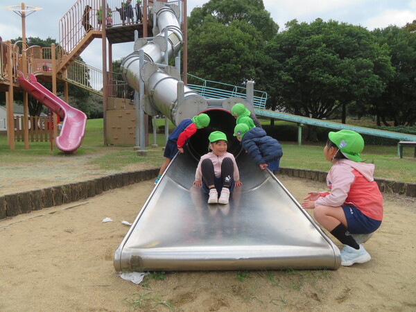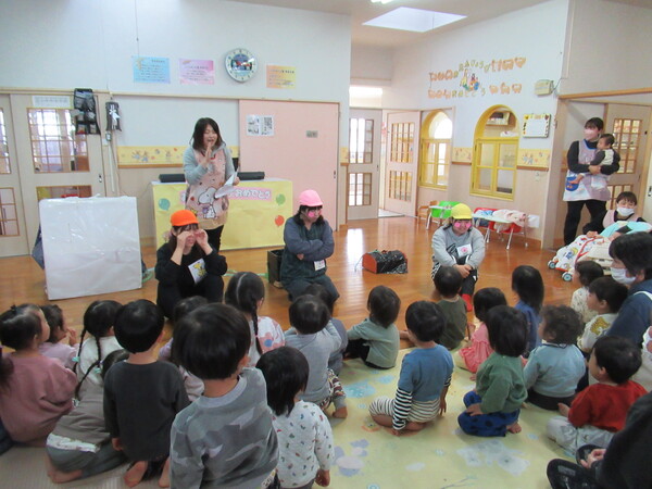 28日に地震の避難訓練をしました。避難した後に「なんの避難訓練でしたか?」と尋ねると「かさい!」「かじ!」ときりん組のお友だちが返事をしてくれました。1月からは幼稚園舎に移動をするので、はっきり返事をする姿に頼もしさを感じました。