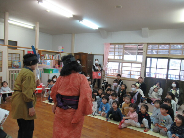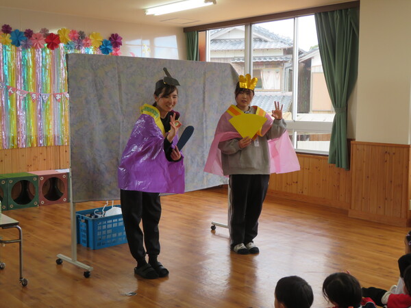 お楽しみでは、お雛様とお内裏様が登場してみんなで歌をうたいました。