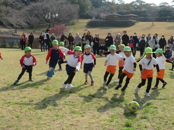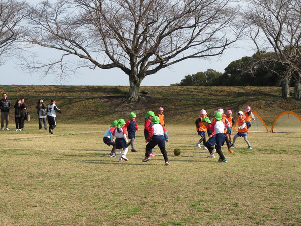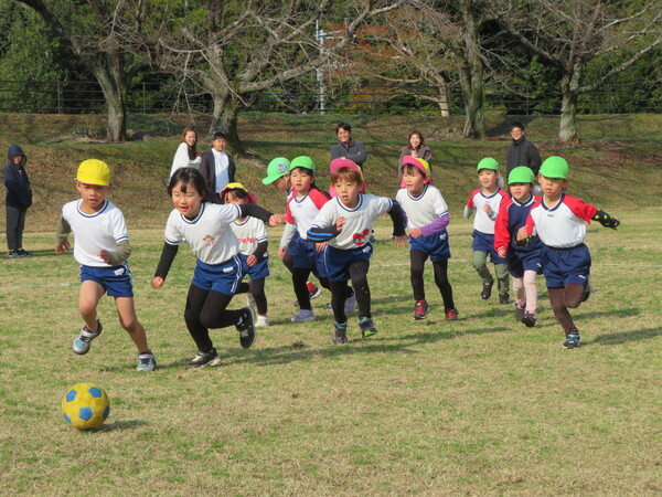 国見町内の年長さん対抗の「KUNIMIキッズフェスティバル2026」が百花台公園のソフトボール場でありました。天気にも恵まれ、ボールを追いかけて各チーム一生懸命走りました。勝負の結果で喜んだり、悔しがったりと色んな表情を見せてくれました。それでもまだ「れんしゅうしたい!」「またしあいをしたい‼」とサッカー大会の参加を通して、チームワークや最後まで諦めず頑張る姿をたくさん見ることができました。保護者の皆様にもたくさん応援に来ていただき、熱い声援を送っていただきました。本当にありがとうございました。