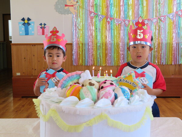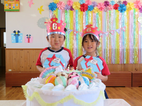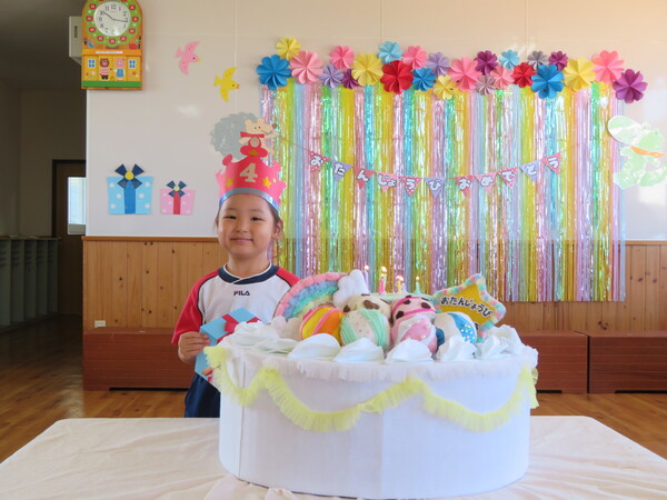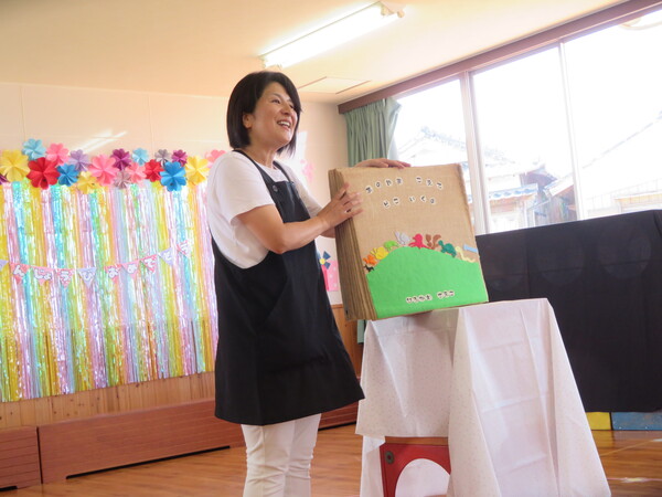 9月生まれのお誕生会がありました。緊張した表情でみんなの前に出た誕生児の子ども達でした。インタビューに答える姿にもそれぞれ成長を感じました。お楽しみでは「ゴリラ」が登場!ゴリラさんがもってきた果物が現れると子ども達の目がキラキラ〜☆歌に合わせて果物を食べていくゴリラさんを楽しそうに見ました‼