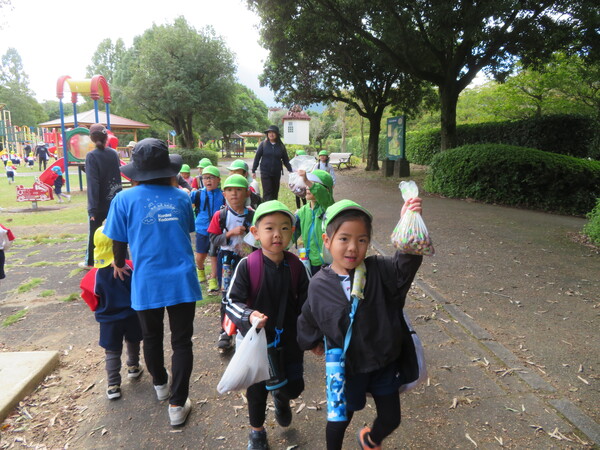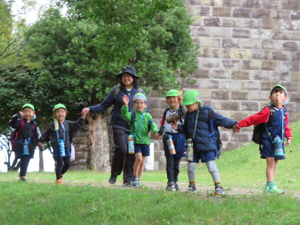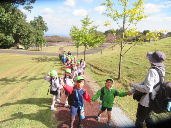 今日はみんなが楽しみにしていた秋の遠足でした。「お弁当楽しみ〜」「早く行きた〜い」とニコニコで登園してきた子どもたち。