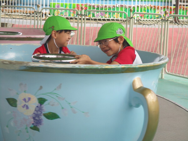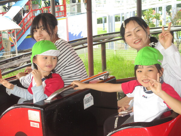 20日(月)に年長組の修園旅行で熊本の三井グリーンランドにいきました。みんなで大型バスに乗り、「うぁ〜おおきい〜たか〜い!」とバスの中から見える景色に興奮していた子ども達です。熊本に着き、グリーンランドが見えてくると興奮度はMAXに(≧▽≦)