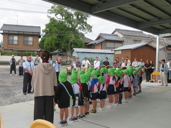 風水害の避難訓練をしました。先生達が川の氾濫を発見したあと、子ども達は先生達と避難をはじめました。避難訓練の雰囲気が分かる子も多く、お友だちと一緒に静かに避難が出来ました。お話しの時も避難についての質問に返事をしっかり返していて4月当初との成長を感じました。その後は、園庭遊びや散歩に行って遊びました。