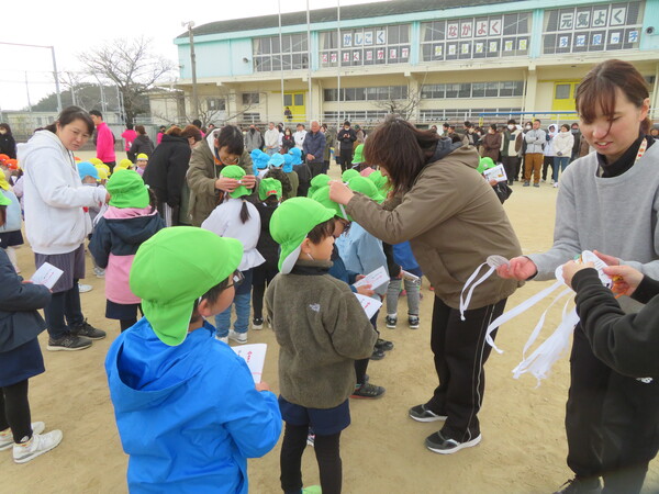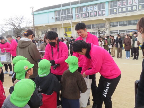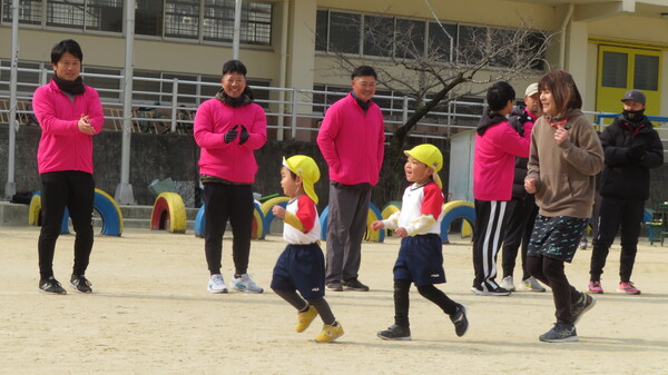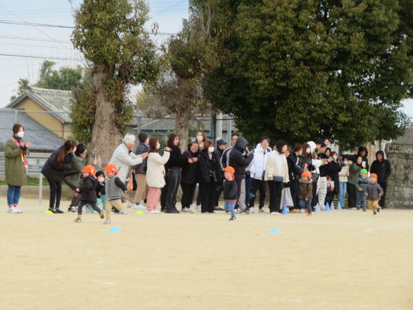 2月7日(土)に多比良小学校の校庭をお借りしてマラソン大会を行いました。当日は天気にも恵まれ、たくさんの応援をもらい全員自分の足でゴールすることができました。練習中は長く走ることに消極的になっているお友だちもいましたが、自分のペースで最後まで走ることを目標に保育者と一緒に取り組んできました。練習も後半になると取り組み方にも変化がみられ、自分で目標を決めている子もいました。